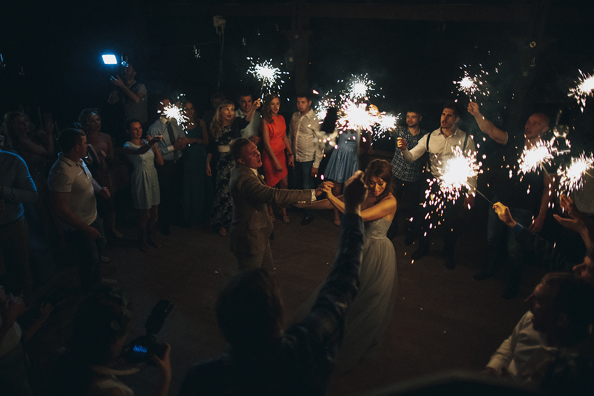 На свадьбе царила потрясающая атмосфера: один большой дружный стол с гостями, пароходы и баржи, плывущие неспешно по волнам реки, блеск в глазах и шумные танцы — вот, что сопровождало наш праздник!