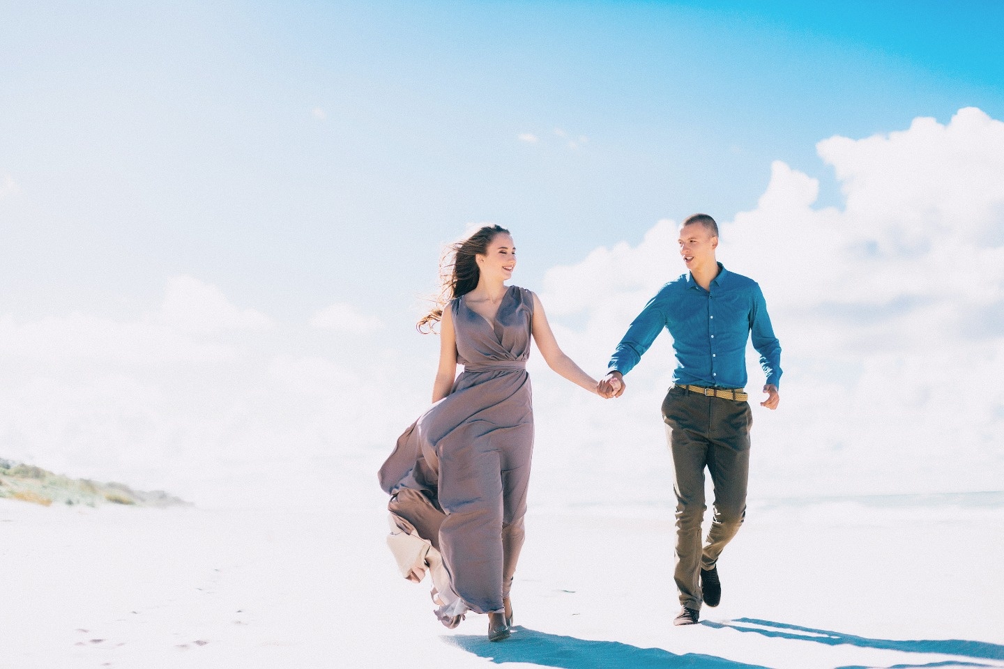 В этой съемке помимо пары есть еще один герой — ветер, такой же свободный и сильный, как и главные действующие лица. Среди белого песка, синего неба и бирюзовых волн они не побоялись стихии, а потому кадры получились просто фантастические!