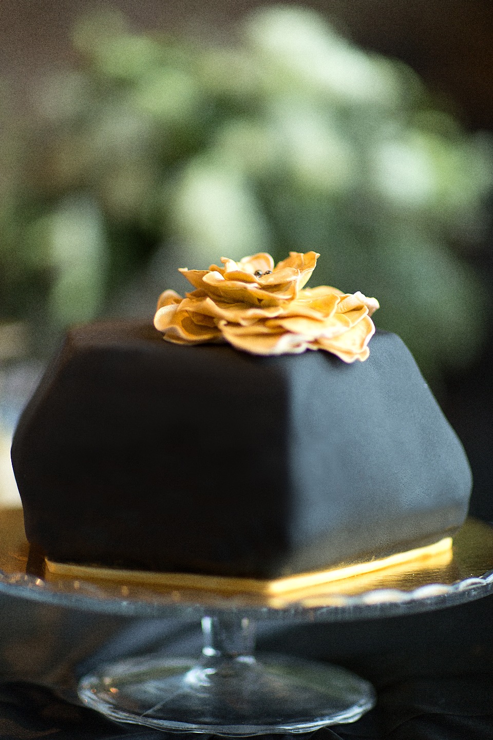 Черно-золотая палитра, стиль урбан-шик. Черный цвет актуален в этом сезоне как никогда и не мог остаться без нашего внимания. Золотые элементы и белые цветы в оформлении добавили торжественности и мягкости. Черное сексуальное платье героини было выбрано неслучайно — оно отразило хищный и уверенный нрав городских жительниц нашего времени, но при этом, в целом образ вышел очень женственным.