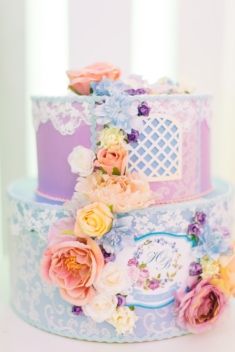 С флористом Татьяной мы сразу поняли друг друга. В совместных обсуждениях родилась стилистика цветочного сада в розовых, голубых и сиреневых тонах. Через некоторое время были готовы эскизы президиума, кэнди бара, столов гостей и стенки для выездной регистрации, которая трансформировалась после церемонии в фотозону. Данный стиль был выдержан и в атрибутике, в кондитерских изделиях, в образах подружек невесты и друзей жениха, в подарках для гостей.