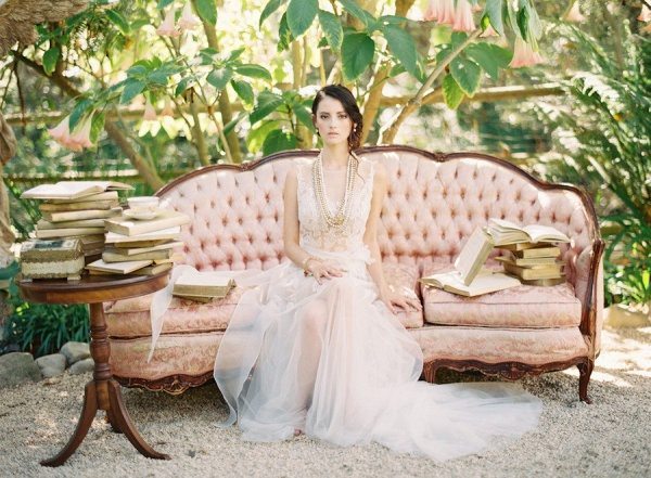 Продумать ваши образы стоит очень тщательно, ведь любая ненужная и неуместная деталь может испортить впечатление. Платье невесты — это, несомненно, винтаж! В стиле, материалах или отделке винтажные элементы должны присутствовать в наряде обязательно. В первую очередь обрати внимание на кружево: тканое, вязаное или просто кружевная отделка — она отлично подчеркнет шебби шик. Для платья в этом стиле также можно использовать шелк, а кружево оставить на отделку платья, фату или декор букета невесты.