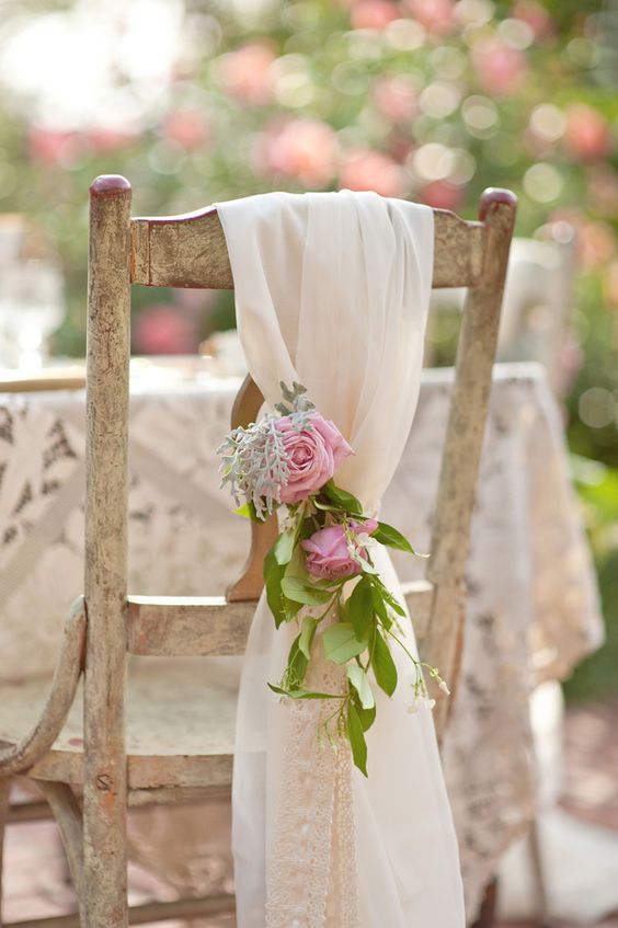 - • Шелковые ленты и бутоны цветов для украшения стульев