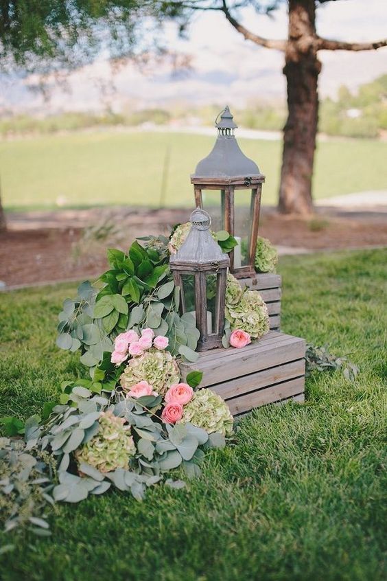 - • Клетки или старые люстры с цветами для декора церемонии