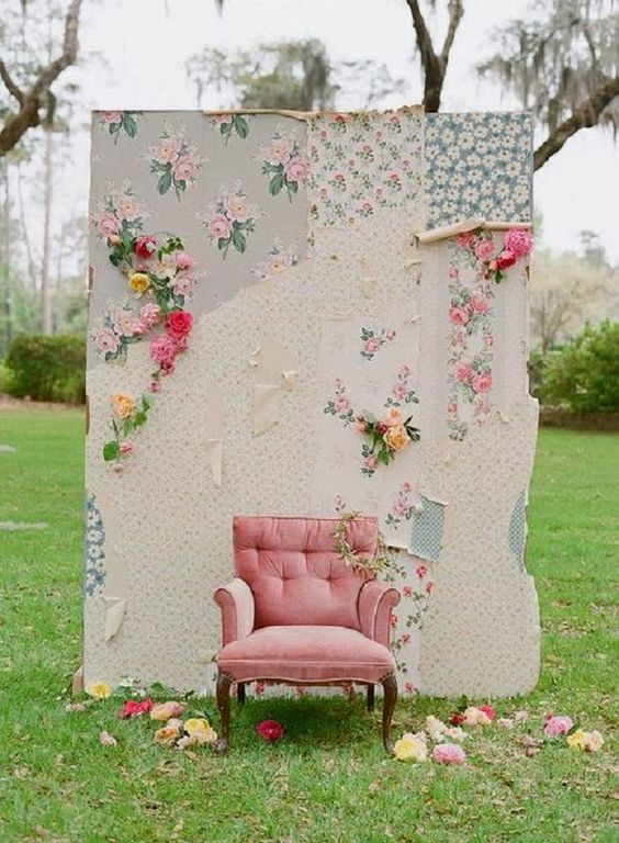 - • Фон для фотосессии из старых обоев с подходящим цветочным принтом