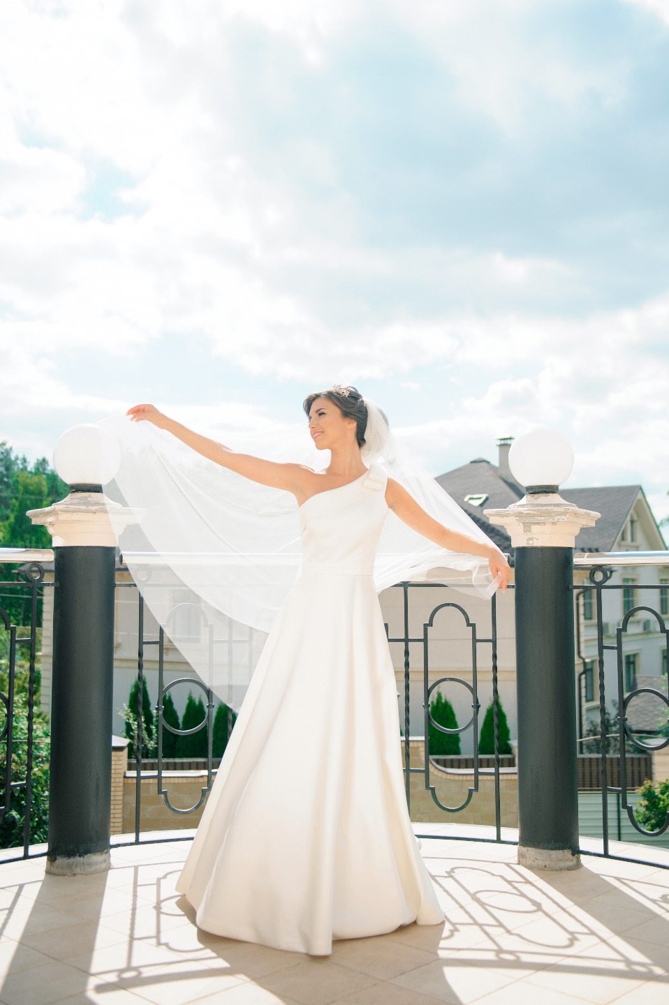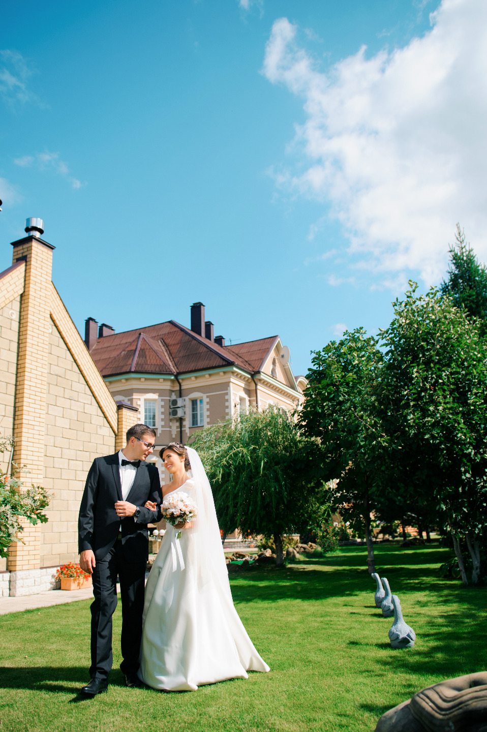 Утро свадебного дня прошло на свежем воздухе в коттедже моих родителей. Погода нас очень порадовала: солнечно, +21. После встречи с женихом мы провели фотосессию, а затем отправились в ресторан «Для Вас», на территории которого у нас проходила выездная регистрация, а затем банкет.