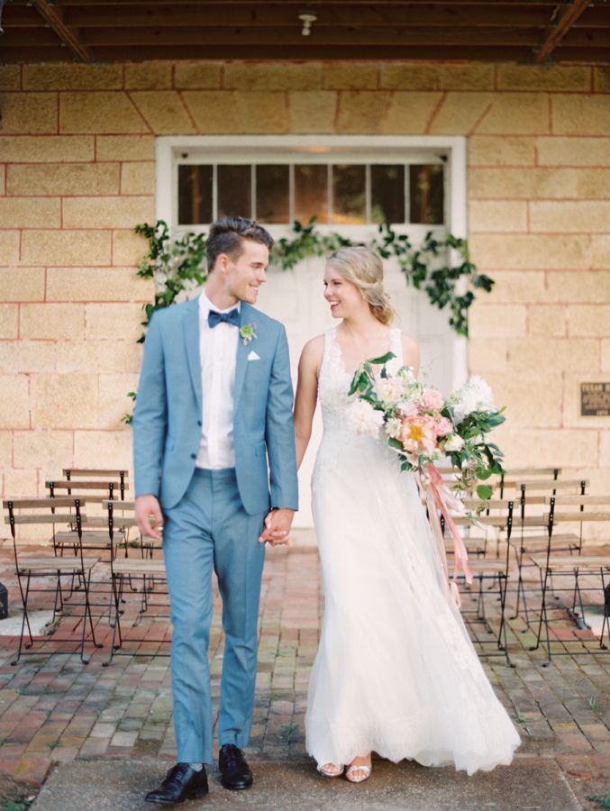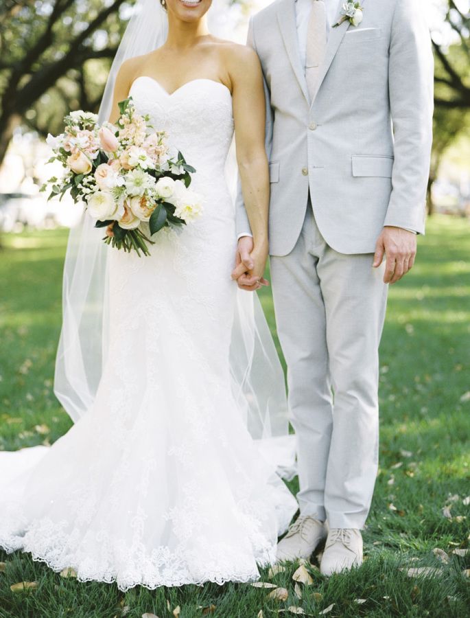 После покупки платья можно приступать к костюму жениха — образы лучше выбирать именно в таком порядке, чтобы наряды смотрелись вместе гармонично. Если бюджет ограничен, то образ жениха можно выбирать с расчетом «на будущее». Например, повседневные брюки-чинос и цветной пиджак, которые впоследствии можно будет надеть на работу или на выход.