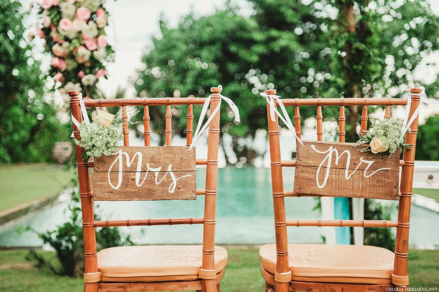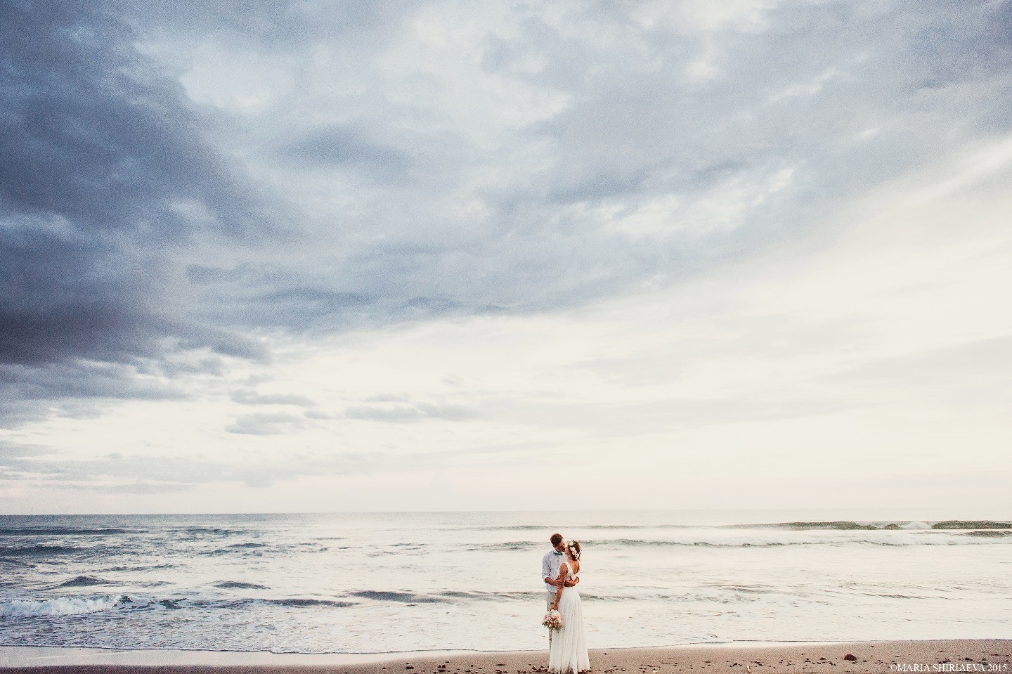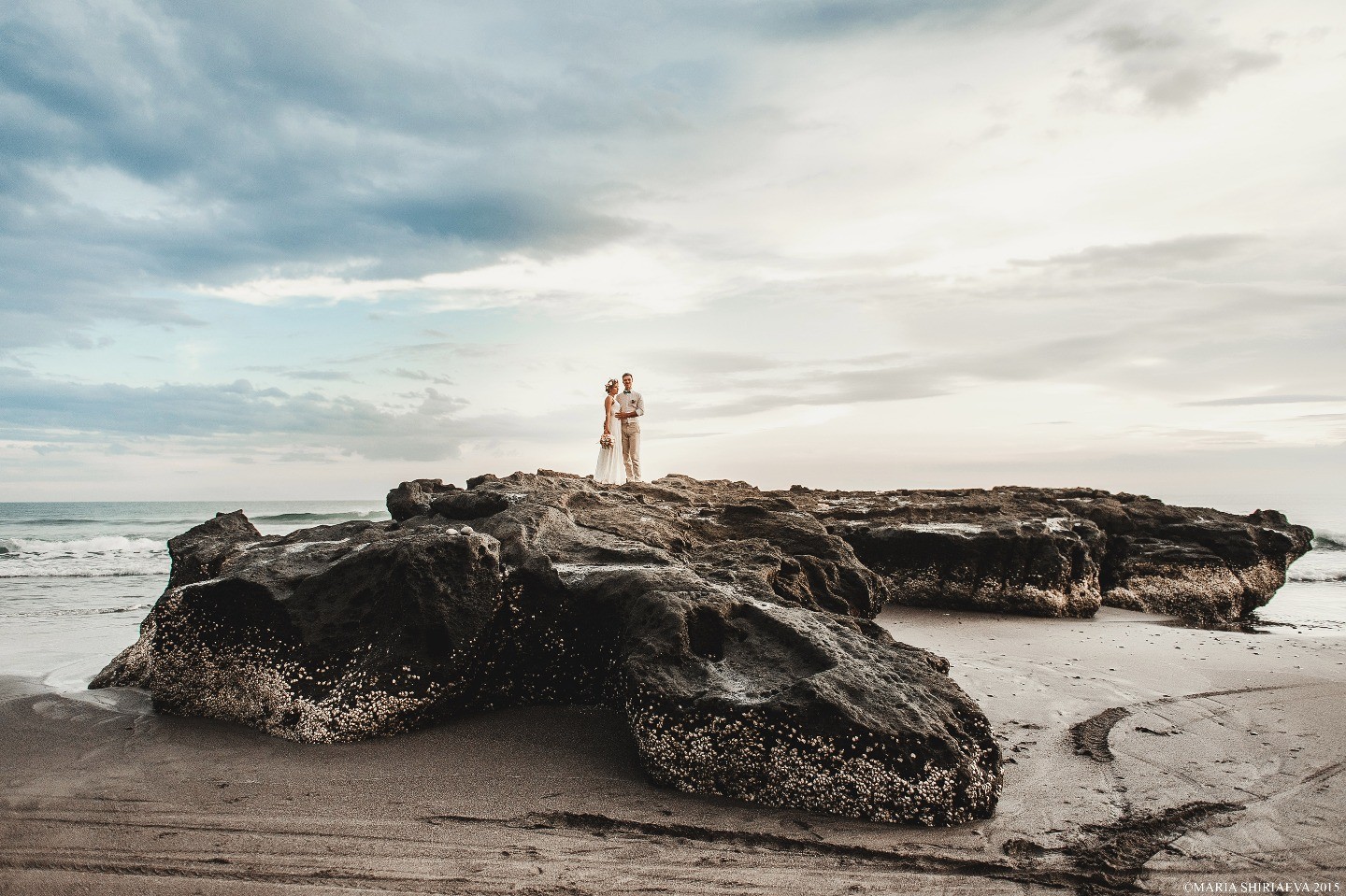 Свадьбу начали планировать практически сразу после возвращения в Москву. Мы стараемся много путешествовать и влюблены в океан и серфинг, поэтому тайно мечтали о свадьбе на острове Бали, где до этого побывали уже 4 раза! Сначала у нас было множество сомнений: выйдет дорого, гости не смогут приехать, мы не найдем хороших подрядчиков, но первые расчеты показали, что, возможно, свадьба на Бали — это наиболее бюджетный вариант из всех. Так что мы выбрали дату — конец апреля (перед майскими праздниками, чтобы все гости смогли приехать) и приступили к планированию. Более того, совершенно случайно вышло так, что один наш знакомых и его жена, живущие на Бали, имеют связи в свадебном бизнесе, поэтому ребята помогли нам во всем: от выбора места проведения до заказа текстиля нужного нам цвета.
