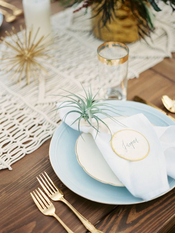 - • Неформальная: При такой сервировке предметов на столе уже больше. Каждый предмет сервировки занимает свое место, стол накрывают текстилем в один или два слоя. В зависимости от предполагаемого меню определяется и состав приборов, посуды и бокалов/фужеров: тарелок — не меньше двух, два или три бокала. Это самый распространенный тип сервировок на иностранных съемках или свадьбах. Сейчас такие сервировки встречаются и в российских ресторанах, но не так часто. А значит, самое время смело внедрять его на свадьбах!
