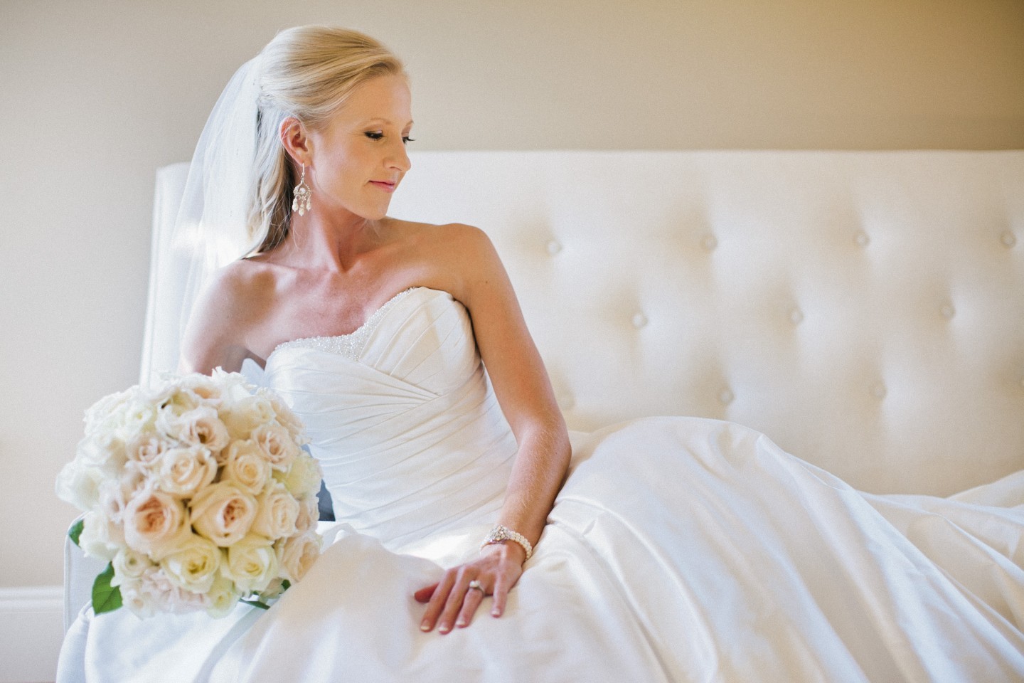 Попробовать различные оттенки платья. У каждой девушки свой цвет кожи, и не каждой подходит чисто белый оттенок. Ты можешь приложить разные ткани, и понять, какой лучше подчеркивает твою красоту, а не делает тебя слишком бледной.